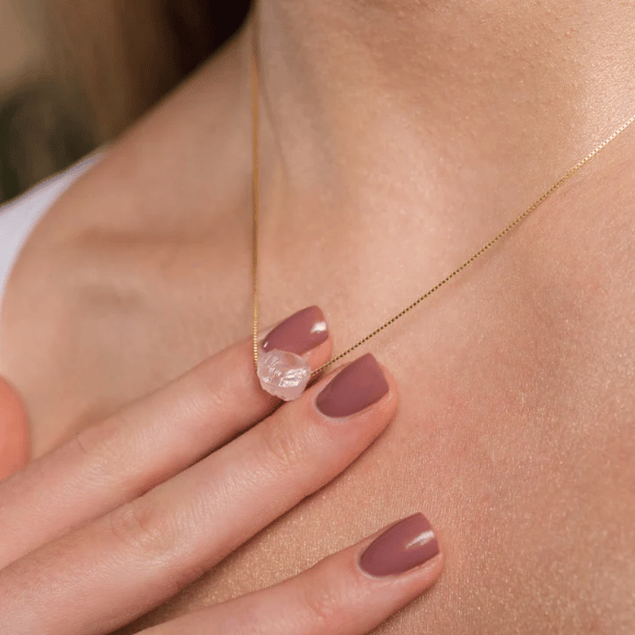 Rose Quartz Necklace | Heart Chakra Jewelry | January Birthstone | Raw Quartz Necklace in Sterling Silver, 18K Gold, and Rose Gold