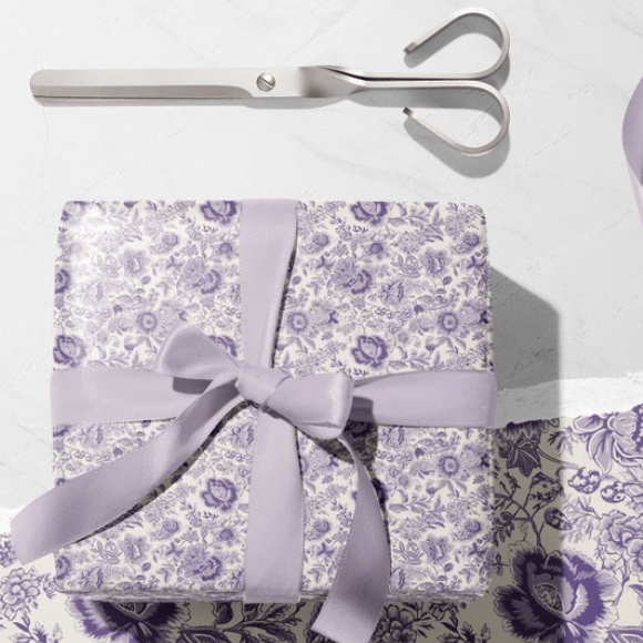 Berry Aubergine Chinoiserie Wrapping Paper | Purple Floral Holiday Gift Wrap | Chinoiserie Paper